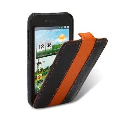 Кожаный чехол Melkco Leather Case Black/Orange LC для LG P970 Optimus Black