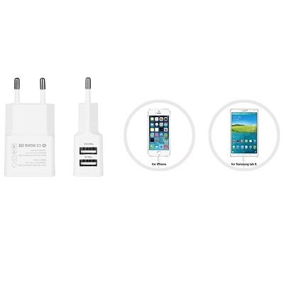 Сетевое зарядное устройство Ainy EA-031B с 2-мя USB (1A/2.1A) White