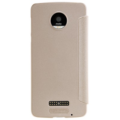 Полиуретановый чехол книга Nillkin Sparkle Leather Case Gold для Motorola Moto Z Play