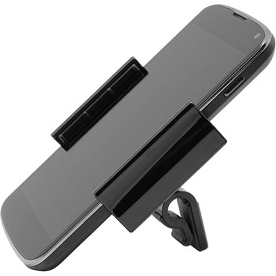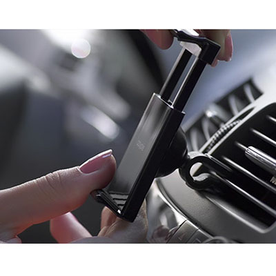 Держатель для смартфонов на решетку вентиляции Vent-Q5 используется с девайсами с экраном до 6 дюймов. Автодержатель легко устанавливается на одну из лопастей решетки вентиляции и также легко снимается. Желательно использовать нижнюю лопасть воздухозаборника, чтобы снизу держатель упирался в пластик приборной панели.Смартфон в зажим автодержателя вставляется одним движением руки, его можно вращать вокруг оси, менять наклон и выбирать подходящий угол обзора экрана. В Vent-Q5 применяется шаровое соединение зажима смартфона и основания держателя. Это и дает большие возможности в регулировках. Такая конструктивная особенность отличает эту модель от большинства держателей. Крепление держателя телефона на дефлектор очень простое и не ограничивает обзор лобового стекла водителю,поэтому такой вариант установки становится все более популярным. Установка держателя отличается простотой и удобством.