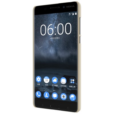 Пластиковый чехол с пленкой Nillkin Super Frosted Shield Gold для Nokia 6