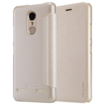 Полиуретановый чехол книга Nillkin Sparkle Leather Case Gold для Lenovo Vibe K6