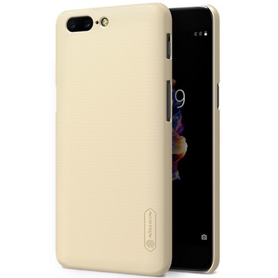 Пластиковый чехол с пленкой Nillkin Super Frosted Shield Gold для OnePlus 5