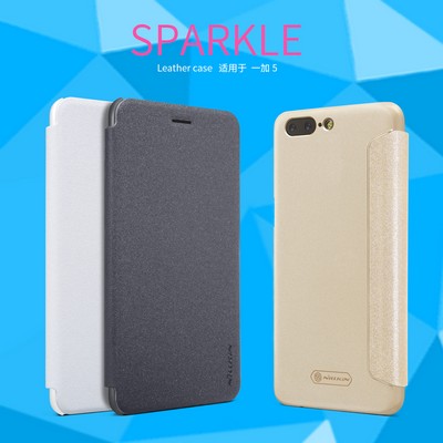 Полиуретановый чехол книга Nillkin Sparkle Leather Case Black для OnePlus 5