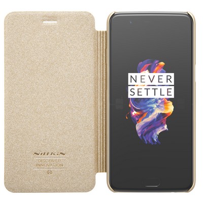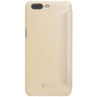 Полиуретановый чехол книга Nillkin Sparkle Leather Case Gold для OnePlus 5