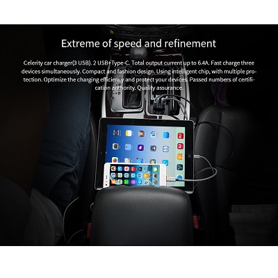 Азу Nillkin Celerity Car Charger Grey 6.4A 32W ( 3 выхода: Type-C и 2 Usb )