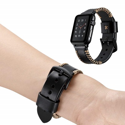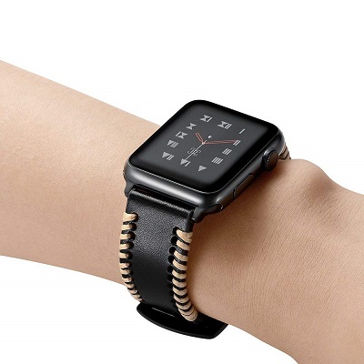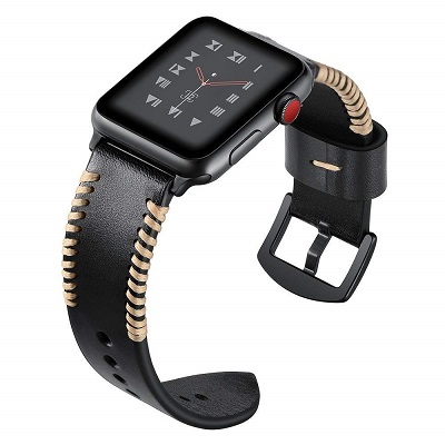 Кожаный ремешок с переплетом из нити черный для Apple Watch 42mm Series 1\2\3