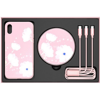 Подарочный комплект Nillkin Fancy (беспроводное ЗУ + чехол+кабель 3в1) розовый для Apple iPhone Xs