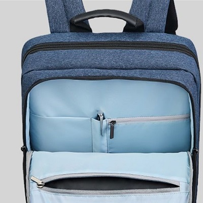 При ближайшем рассмотрении Xiaomi Mi Classic business backpack синий владелец поймет, что рюкзак разделен на три независимых отделения, каждое из которых имеет свое целевое назначение. Фронтальный карман выполнен заподлицо с поверхностью рюкзака. В данном отсеке можно удобно расположить какой-нибудь плоский предмет, например, свои личные документы, а также пристегнуть ключи от квартиры на карабин.