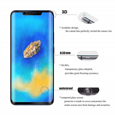 Противоударное защитное стекло с полным клеем Full Glue Screen Cover 0.3mm черное для Huawei Mate 20 Pro