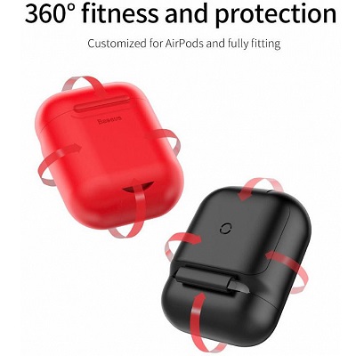 Baseus Wireless Charger изготовлен из гибкого и прочного силикона, что обеспечивает простую установку чехла на зарядный кейс. В задней стенке имеется встроенный приемник для беспроводной зарядки. Для проводной зарядки в днище чехла имеется вырез для разъема зарядки. Модель полностью покрывает корпус кейса AirPods, исключая накопление пыли и грязи на корпусе гаджета.