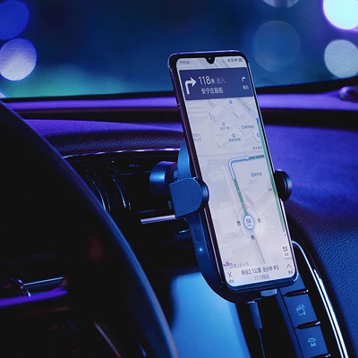 - Зарядное устройство с функцией кронштейна для навигатора – что может быть удобнее? Поставьте телефон на зарядку, настройте угол обзора и включите приложение с навигацией, чтобы следить за дорогой. Расстояние реакции датчиков зарядки – 4 мм, поэтому можно заряжать смартфон, не снимая чехла. Доехав до пункта назначения, нажмите боковую кнопку зарядного устройства, чтобы забрать смартфон.