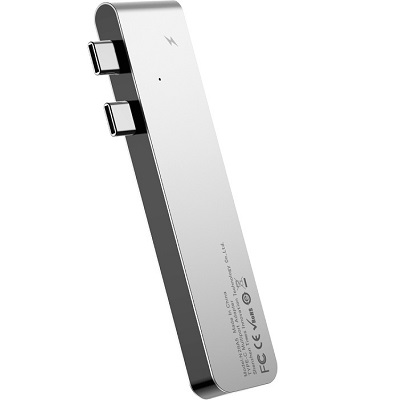 USB-концентратор Baseus Thunderbolt C+ изготовлен из высокопрочного и легкого алюминиевого сплава и имеет расцветку, точно повторяющую цветовую палитру линейки MacBook Pro 2016/2017. Все выходные разъемы расположены на достаточном удалении друг от друга так, чтобы подключаемые штекеры различного форм-фактора не мешали друг другу. Подключение к ноутбуку осуществляется при помощи двух коннекторов USB-C, расположение которых точно совпадает с аналогичными разъемами в MacBook Pro. Также хаб оснащен LED-индикацией подключения.