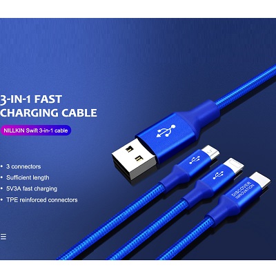 Многофункциональные аксессуары для смартфонов пользуются неизменной популярностью у покупателей. Ведь покупая один предмет, вы можете использовать его для различных гаджетов. Ультрасовременный кабель NILLKIN Swift 3-in-1 cable является интересным вариантом, который предусматривает целый ряд преимуществ: