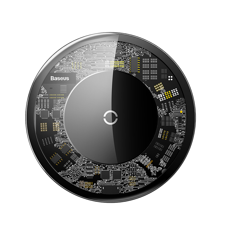 ЗУ Baseus Wireless Charger Simple очень тонкое и занимает минимум места. Оно подключается посредством комплектного USB-кабеля. Круглая форма и стеклянное покрытие прекрасно сочетаются с современными коммуникаторами. На днище корпуса имеются прорезиненные вставки для уверенного позиционирования зарядки на плоской поверхности. Модель поддерживает быструю зарядку с мощностью до 7.5 Вт и имеет интеллектуальные системы защиты.
