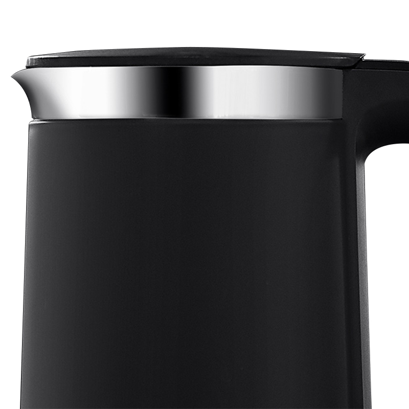 Стильный электрический чайник с закрытой спиралью и вместимостью до 1,5 литра воды выполнен в лаконичном дизайне, в матовом чёрном цвете. Кнопка открывания крышки находится возле ручки, что позволяет наполнять емкость одной рукой. Тумблер включения нагрева с индикатором рабочего режима вынесен вниз – при кипении он автоматически отщелкивается в исходное положение.