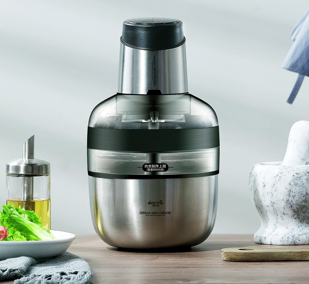 Mi Deerma Meat Grinder изготовлена из прочной нержавеющей стали, имеет достаточно мощный электродвигатель мощностью 400 Вт. У всех кулинаров есть общая мечта – свести к минимуму хлопоты на кухне. Высокая производительность и эргономичный дизайн обеспечивают качественную быструю нарезку продуктов в одно нажатие. Двойной нож вращается с высокой скоростью, образуя трехмерный вихревой поток, обеспечивающий максимально эффективное измельчение мяса и овощей.