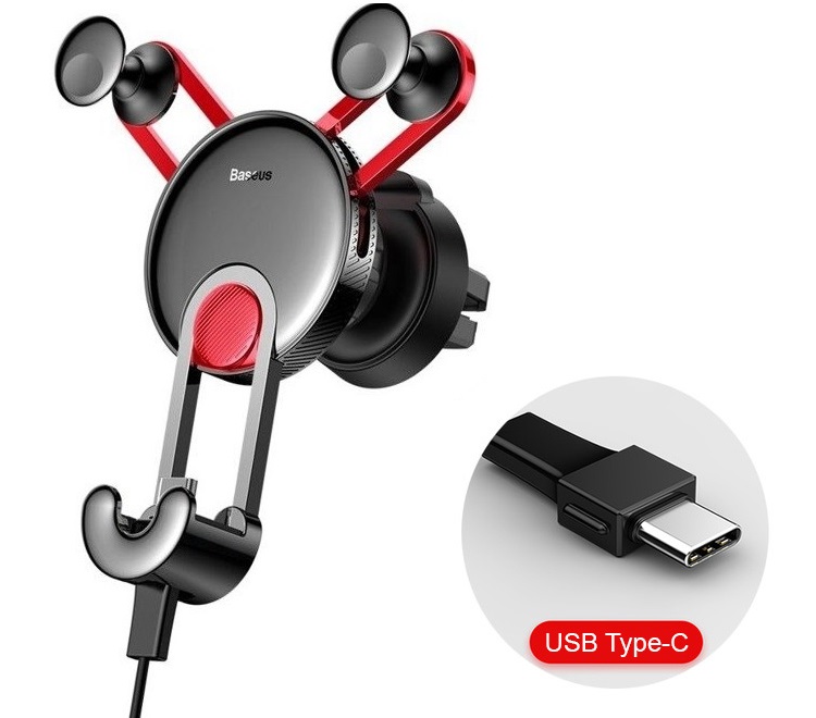 Преимущества автомобильного держателя для телефона в дефлектор с кабелем USB Type-C Baseus Yy Vehicle-mounted - SUTYY-09 красный