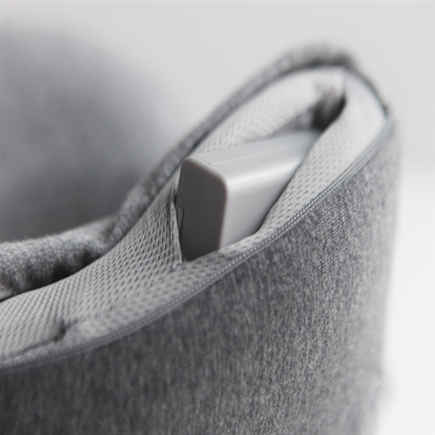 Устройство сделано из мемориформа, который хорошо держит форму и сохраняет тепло, внешняя сторона изготовлена из хлопка. Оба материала гипоаллергенные, а значит девайс подойдет для людей с чувствительной кожей.
