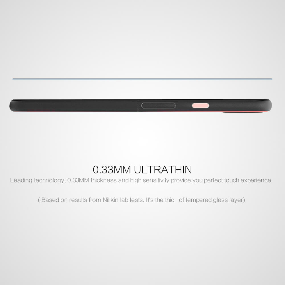 Nillkin CP+PRO решение для защиты экрана Google Pixel 4 XL включает в себя закаленное стекло, которое охватывает не только весь экран, но и стекло за пределами видимой области экрана. Толщина стекла 0.3 мм.