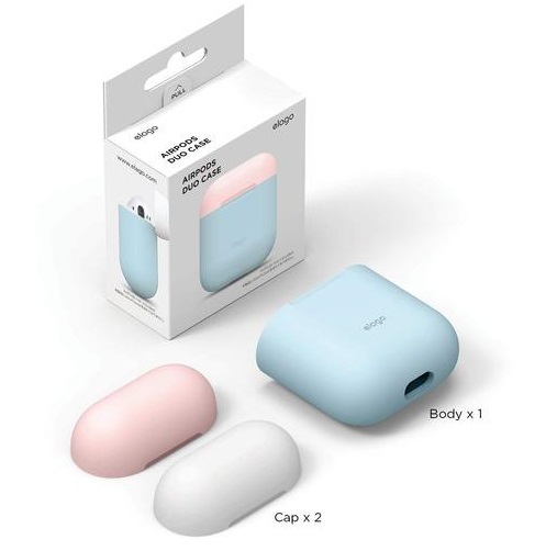 Силиконовый чехол с 2-мя сменными крышками Elago Silicone Duo Case Pastel Blue/Pink/White (EAPDO-PBL-PKWH) для Airpods