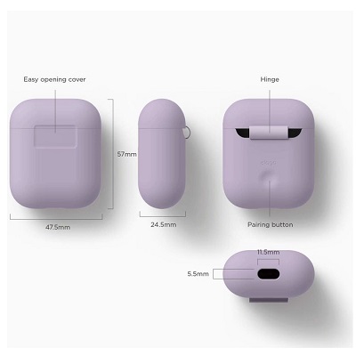 Тонкий чехол практически не увеличивает размеры футляра для наушников, а благодаря разъёму Lightning в Elago Silicone Case вы сможете заряжать футляр AirPods, не снимая чехла.