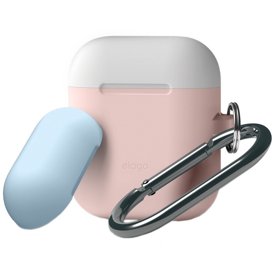 Силиконовый чехол с 2-мя сменными крышками и карабином Elago для AirPods Silicone DUO Case (EAPDH) Pink