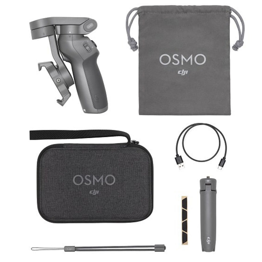 Комплектация: Электронный трёхосевой стедикам DJI Osmo Mobile 3 Combo Ручка-штатив Чехол для транспортировки Мягкий чехол-мешок USB-C кабель Шнурок на запястье Специальные резиновые вставки для рукоятки