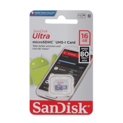 Карта памяти SanDisk Ultra microSDHC Class 10 UHS-I 80MB/s 16GB