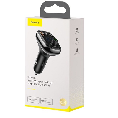 - Baseus Bluetooth T-typed MP3 Car Charger S-13 имеет 2 USB-порта, один из которых обеспечивает быструю зарядку ваших гаджетов током до 2.4А, второй заряжает током до 1А, также поддерживает быструю зарядку Qualcomm Quick Charge 3.0 (через порты USB) и Qualcomm Quick Charge 4.0 (через порт Type-C) и считывает музыкальные файлы с USB-накопителя. Поэтому, вы можете воспроизводить музыку с мобильного и одновременно заряжать его.