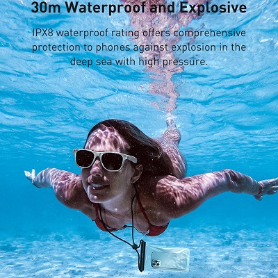 Водонепроницаемый чехол обладает водонепроницаемостью стандарта IPX8 и 4 герметичными слоями, поэтому вы сможете смело пользоваться своим смартфоном во время отдыха на берегу моря, реки, или в бассейне, не боясь что на него попадут брызги воды. Но и это еще не все — вы также сможете погружать смартфон в защитном чехле на глубину до 30 метров, и быть уверенным в его сохранности! Стоит отметить, что при использовании водонепроницаемого чехла под водой функция сенсорного экрана не будет работать, а фотосъемка под водой поддерживается только нажатием кнопки громкости.