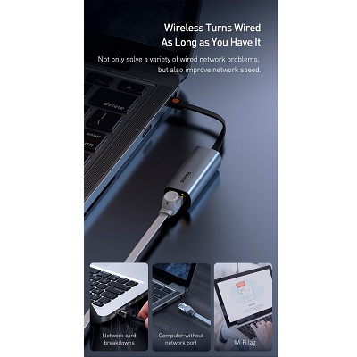 - Baseus Steel Cannon Series позволит подключиться к локальной сети и получить доступ к интернету при помощи разъемов USB-A или USB-C. Модель станет отличным решением для ноутбуков, в которых отсутствует разъем Ethernet. Устройство обеспечит высокую скорость передачи данных без каких-либо обрывов и задержек.