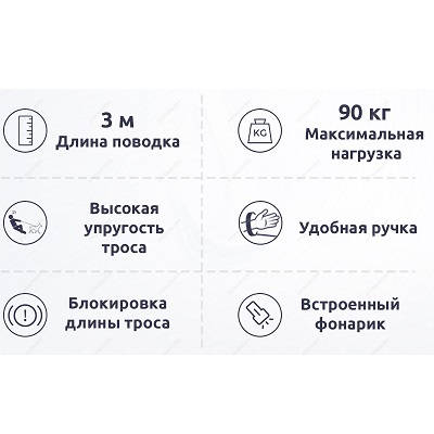 Поводок оснащён встроенным светодиодным фонариком. С ним гулять в вечернее время гораздо комфортнее, а шансы случайно наступить на результат прогулки чужого животного существенно уменьшаются. Питание фонарика осуществляется с помощью встроенного аккумулятора, а зарядка – с помощью кабеля USB-C (входит в комплект).