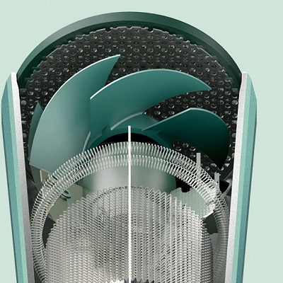 Фен для волос имеет уникальный дизайн, тройную систему фильтрации, удобную форму и 2 насадки в комплекте. Поддерживается 4 режима работы. Встроенный двигатель на 1800 Вт обеспечивает подачу мощных потоков воздуха, скорость которых достигает 15 м/с. Вместе с воздухом выходит 30 млн отрицательных ионов, разглаживающих волосы.