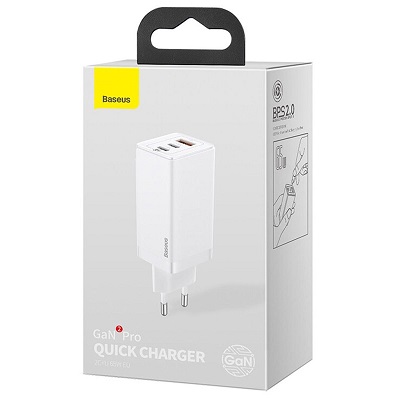 - Baseus GaN2 Pro Quick Charger 2C+U 65W, CCGAN2P-B02 - поколение мощных зарядных устройств собранных на полупроводниках на основе нитрида галлия GaN (Gallium Nitride). Использование новых материалов дало возможность уменьшить вес и размеры зарядного устройства на 30% без потери его производительности.