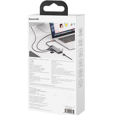 Хаб Baseus CAHUB-CV0G Metal Gleam Series 8-in-1 Multifunctional Type-C HUB Docking Station, Type-C to 3xUSB3.0+HDMI(4k@30Hz)+RJ45(1Gb/s)+SD/TF+PD100W, серый