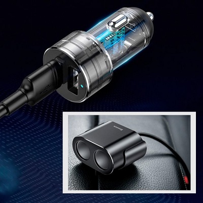 С универсальным зарядным устройством Baseus High Efficiency One To Two Cigarette Lighter вам больше не придется выбирать зарядить первым телефон, включить видеорегистратор или поставить на зарядку планшет ребенка. Вы сможете подключить все эти гаджеты к одной зарядке. Адаптер питания оснащен двумя USB-разъемами и разветвителем на 2 гнезда. Он совместим с большинством устройств, заряжающихся через USB кабель, а также с другими гаджетами, питающимися от гнезда прикуривателя: FM-трансмиттером, портативным холодильником, увлажнителем и т. д.