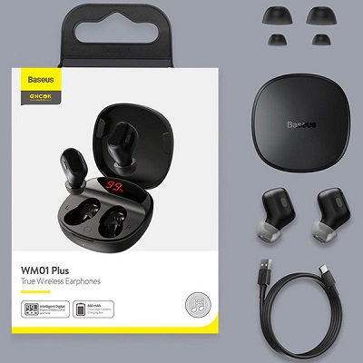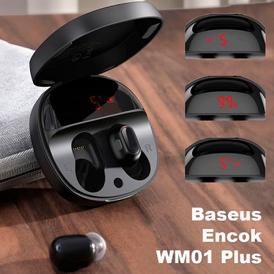 Baseus Encok WM01 Plus – миниатюрные и легкие TWS-наушники с качественным звуком и сенсорным управлением. Удобная посадка, надежная связь, встроенный микрофон и длительное время автономной работы – главные преимущества этой модели. Каждый вкладыш может работать отдельно от другого, в том числе как Bluetooth-гарнитура. При совместном использовании голос собеседника слышен в обоих наушниках. Работают они от аккумулятора, обеспечивающего до 5 часов непрерывного музыкального концерта. Продлить время работы до 50 часов можно с помощью зарядного чехла. Уровень заряда каждого вкладыша и бокса отображается на небольшом дисплее, расположенном под крышкой кейса.