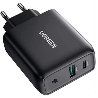 - Одно для всех: зарядное устройство USB-C UGREEN мощностью 36 Вт оснащено как портом питания USB C, так и портом быстрой зарядки USB A.