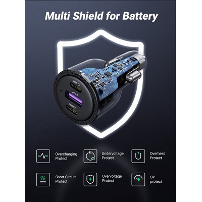 Зарядное устройство автомобильное с USB и двумя Type-C входами 5A 69W Ugreen CD239 (быстрая зарядка PD 3.0, QC 3.0) черное купить в Shoc.by