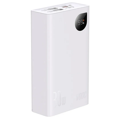 Внешний аккумулятор Baseus Adaman2 Digital Display Fast Charge Power Bank 20000mAh 30W (VOOC Edition) Белый (PPAD050002) - 1 шт Кабель USB to Type-C 3A 0.3m - 1 шт