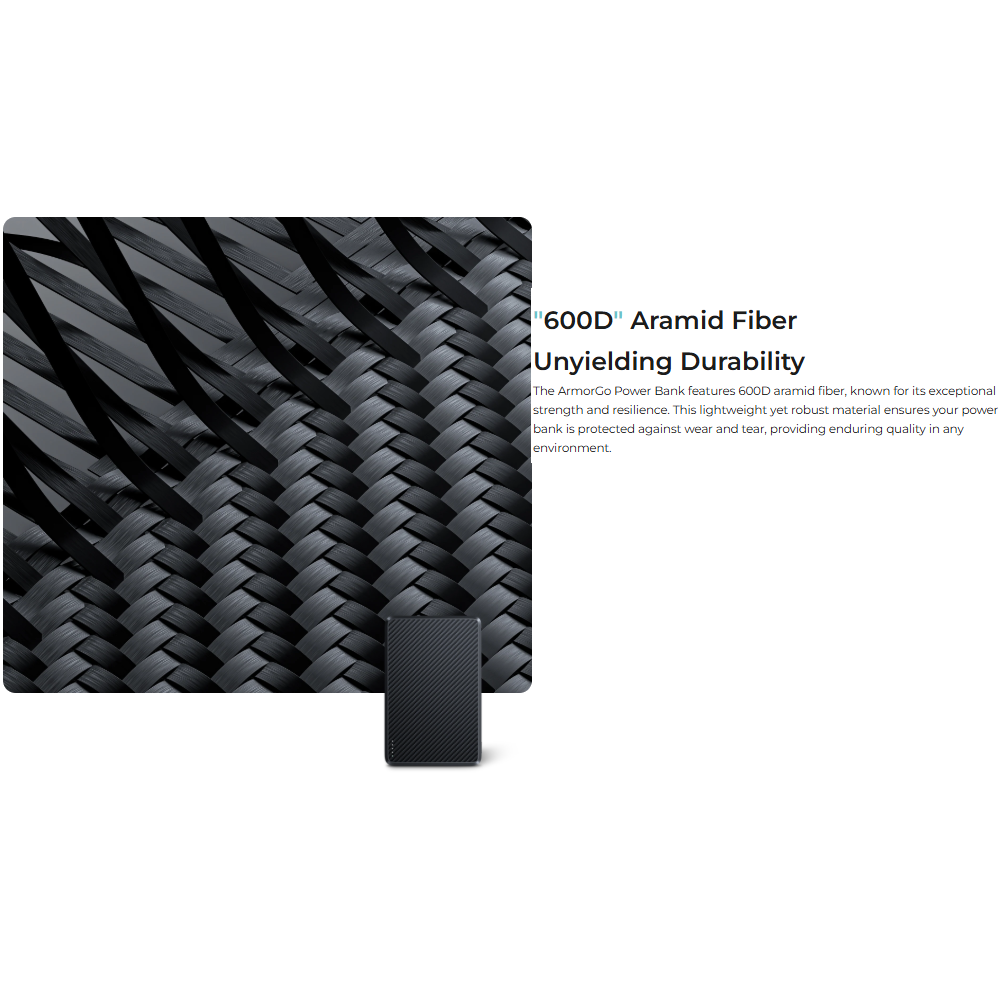 Встречайте ArmorGo — ваш новый легендарный источник энергии. Созданный с использованием прочного 600D арамидного волокна, этот внешний аккумулятор сочетает в себе мощь, надежность и ультратонкий дизайн. Идеальный спутник в поездках, работе или отдыхе, он обеспечивает быструю зарядку и надежную защиту ваших устройств.