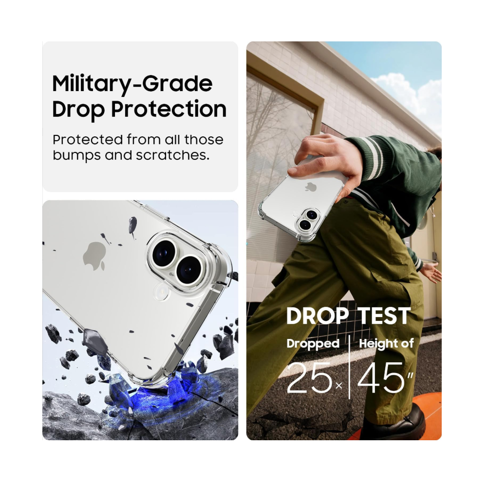 Противоударный чехол PC + TPU iPAKY Crystal Clear Series прозрачный для Apple iPhone 16