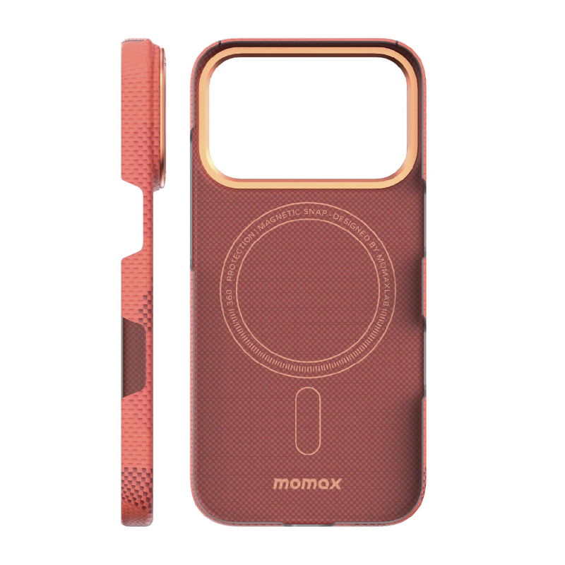 Кевларовый чехол с функцией Magsafe Momax CaseFORM Aramid Magnetic Case оранжевый для Apple iPhone 17 Pro