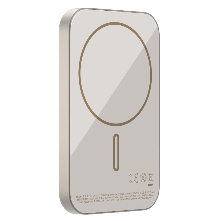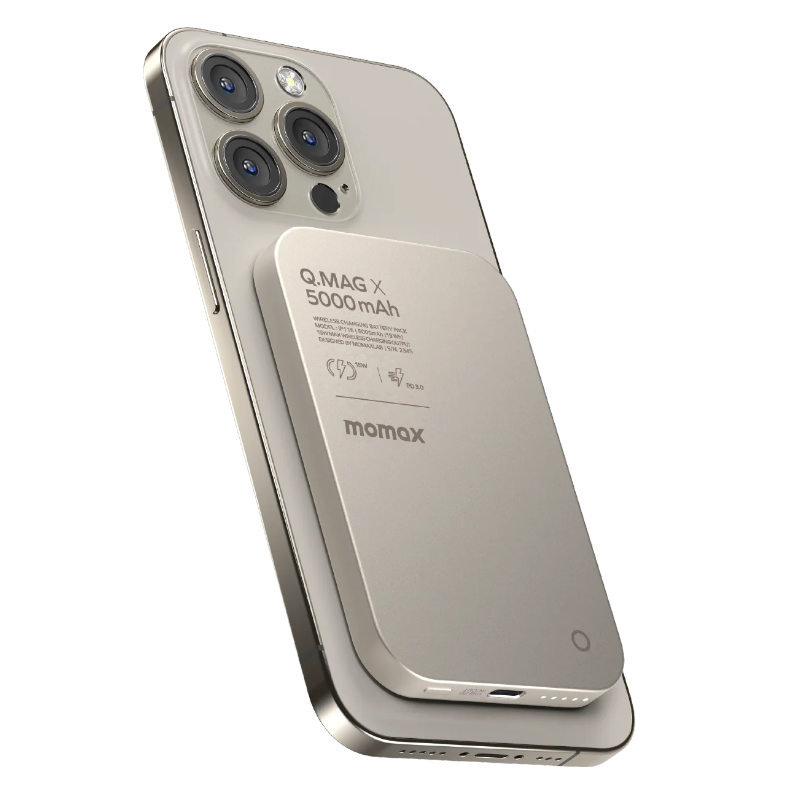 Портативное зарядное устройство MOMAX Q.Mag X1 (5000mAh) Magnetic Wireless Battery Pack (IP116AD) титанового цвета — стильное и надежное решение для быстрой зарядки ваших устройств.