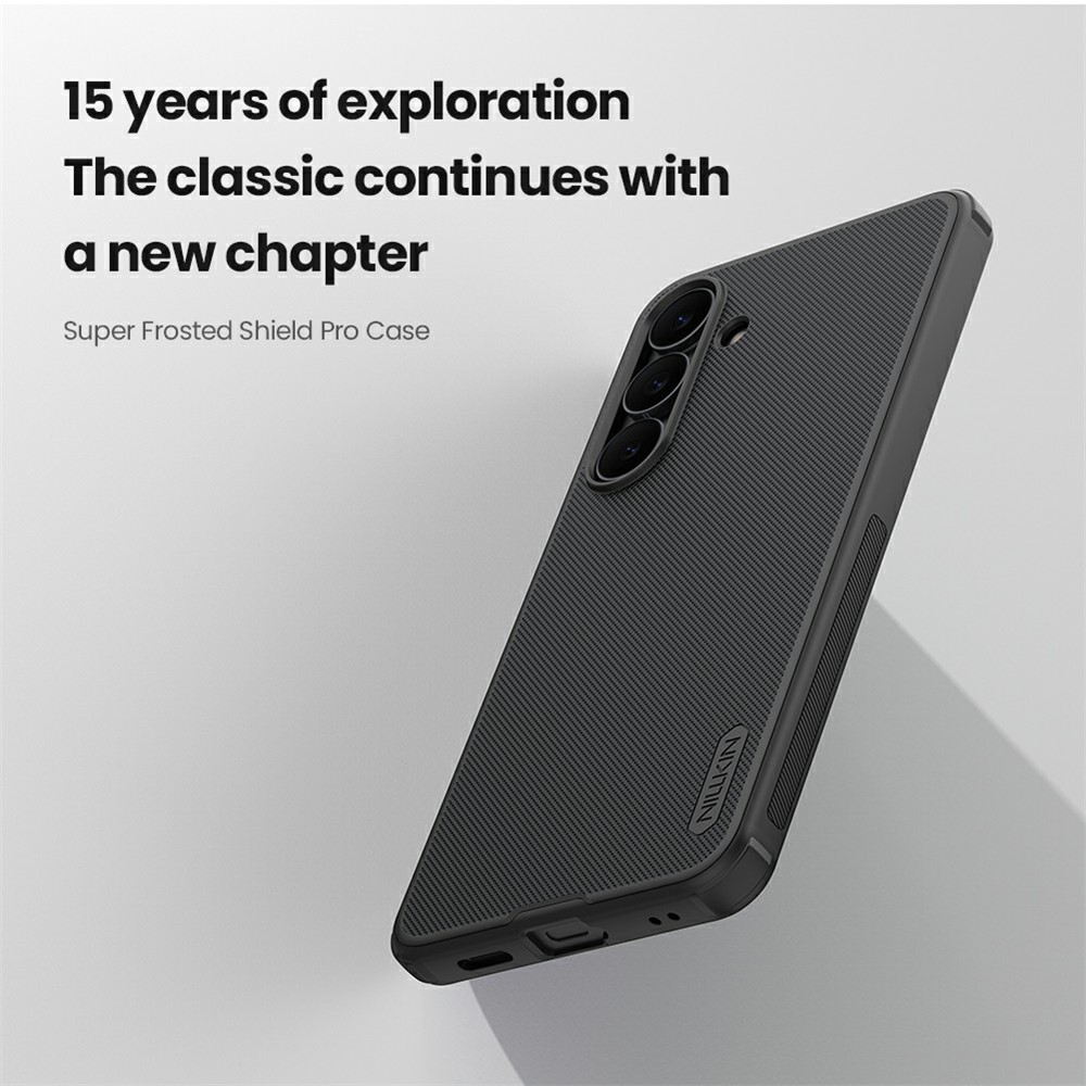 Стильный и практичный жесткий чехол Nillkin Super Frosted Shield Pro создан для надежной повседневной защиты вашего смартфона S25 FE без лишнего объёма.