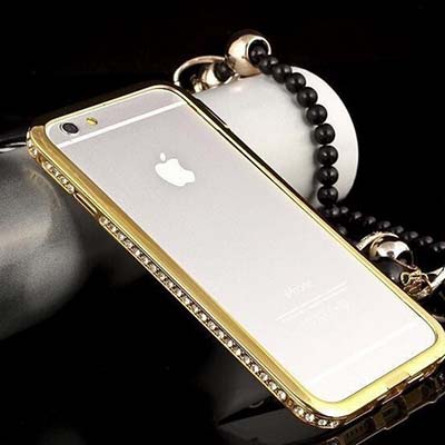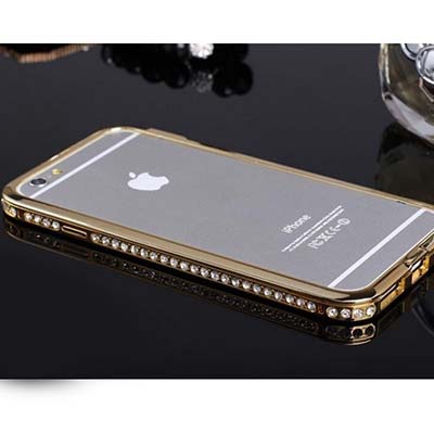 Металлический бампер со стразами Newsh Gold для Apple iPhone 6/6s